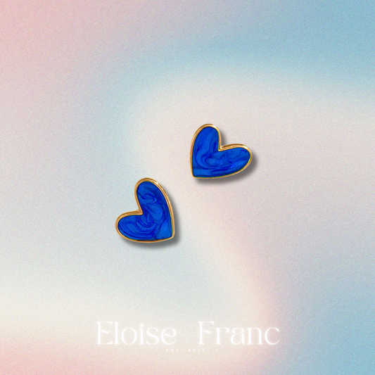 "Bleue" : Blue Heart : Stud Earrings