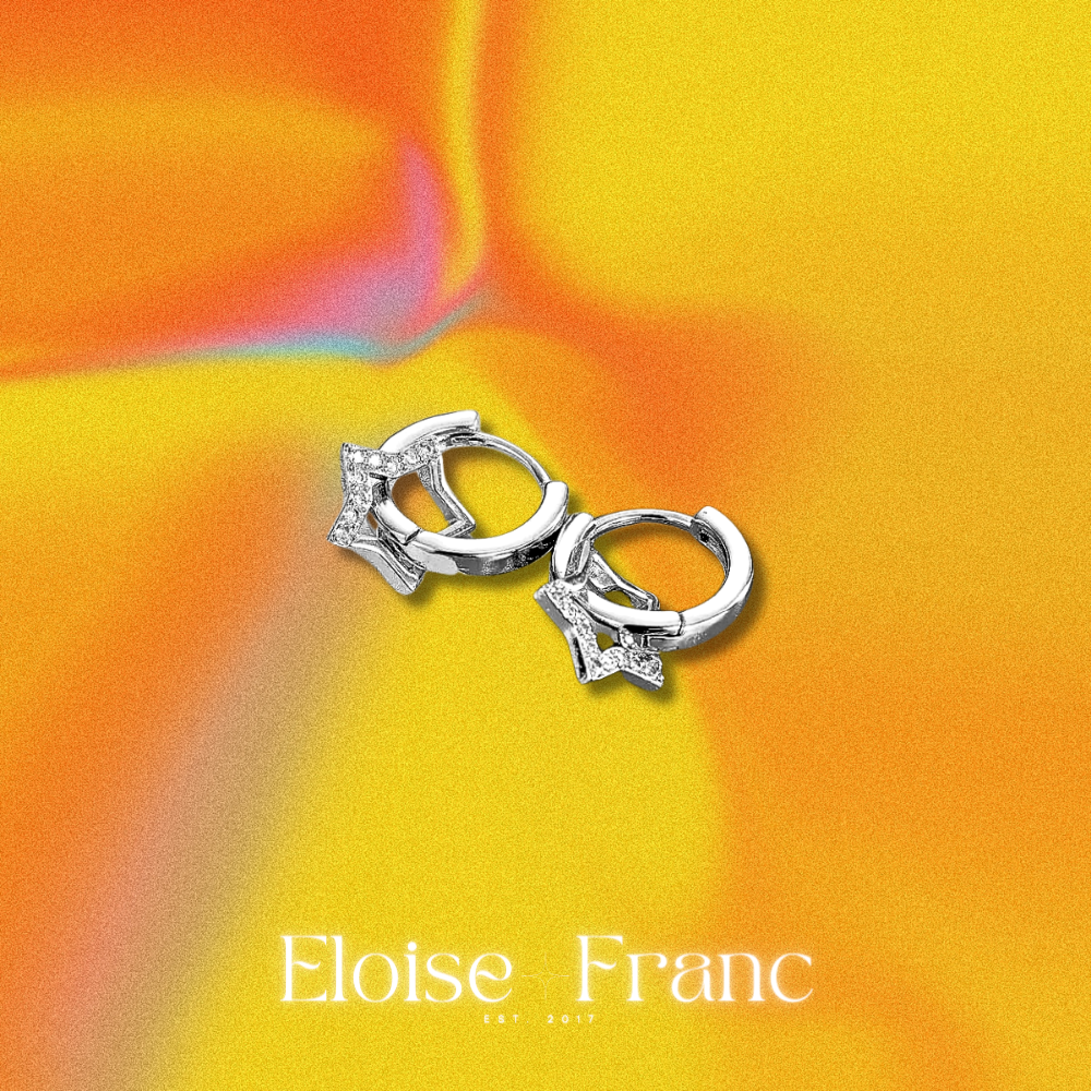 Sip on the sweet essence of nostalgia with Eloise Franc's "Latte" Silver Star Dangle Earrings. These earrings are a celestial nod to the playful and expressive Y2K fashion era, designed for those who carry a piece of the past into the trendsetting moments of today. Each earring presents an exquisite hollow star design, embellished with sparkling zircon to catch the light and the eyes of onlookers.
